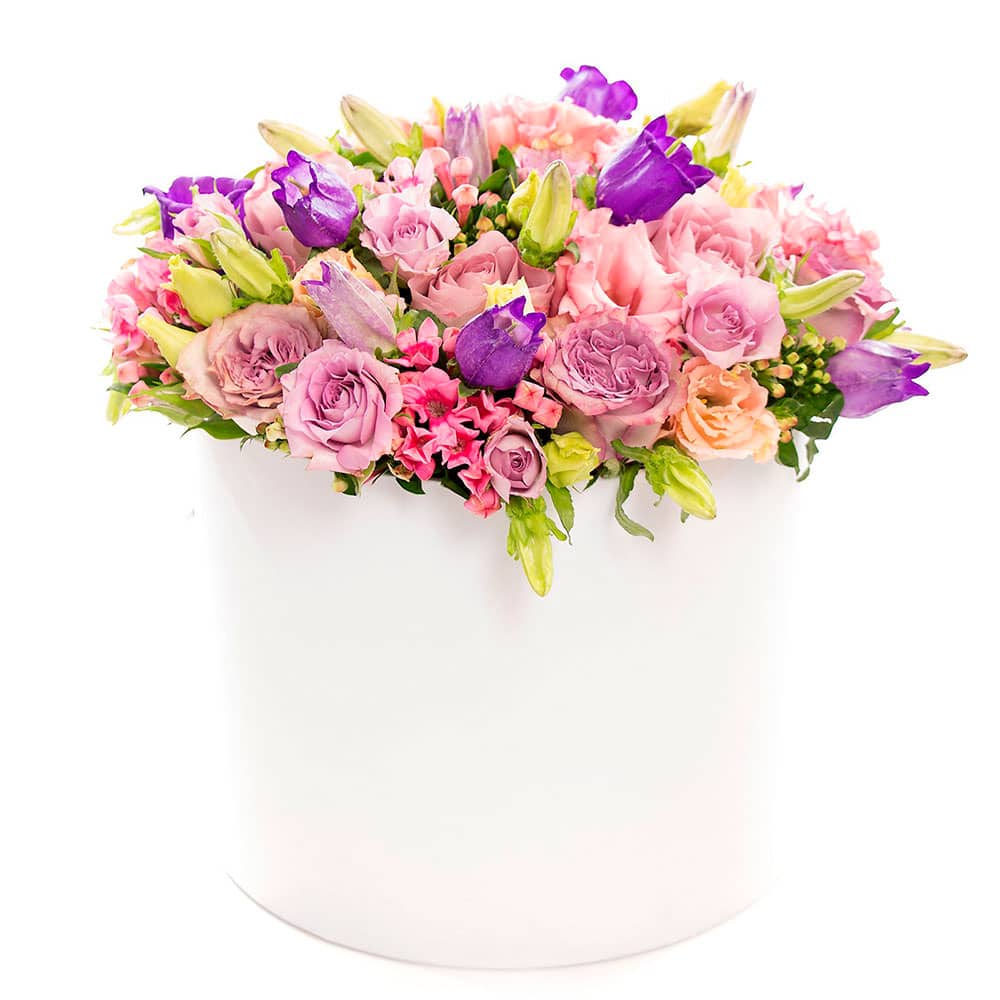 Цветы в коробке «Яркий праздник» с доставкой по г Джермук: вы можете заказать букет в цветочном гипермаркете «Цветоландия» по цене от 13000 драм.